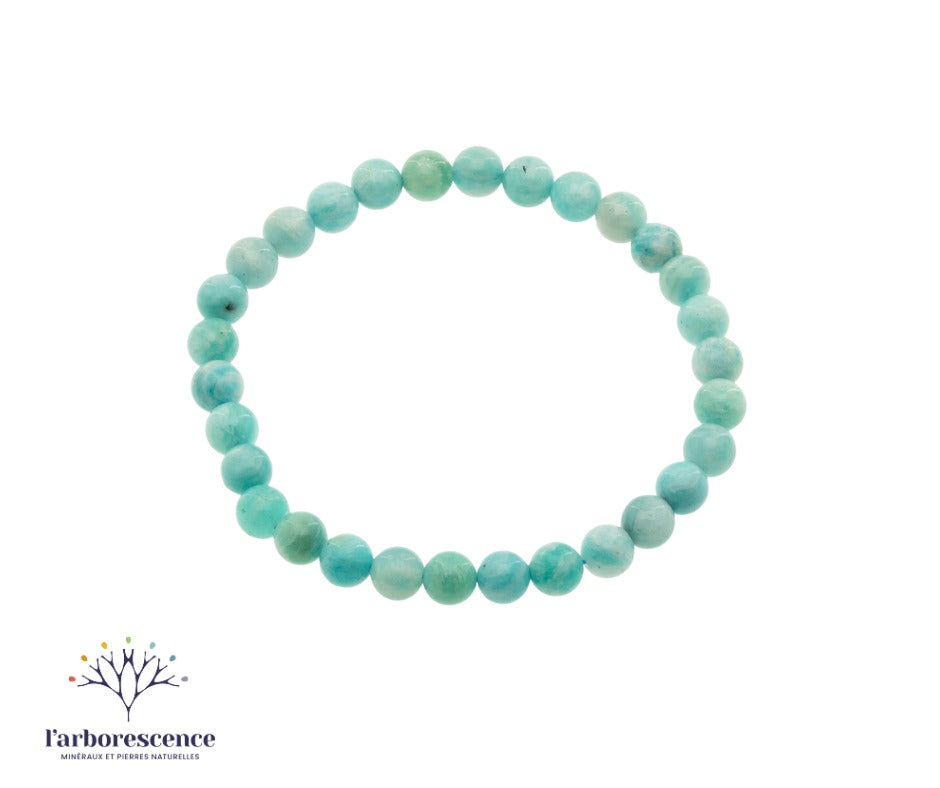 L’amazonite est une pierre semi-précieuse de couleur bleu-vert douce, souvent zébrée de nuances blanches ou crème. Son apparence apaisante évoque les eaux calmes et la sérénité, et sa texture douce en fait une pierre très agréable à porter ou tenir en main.