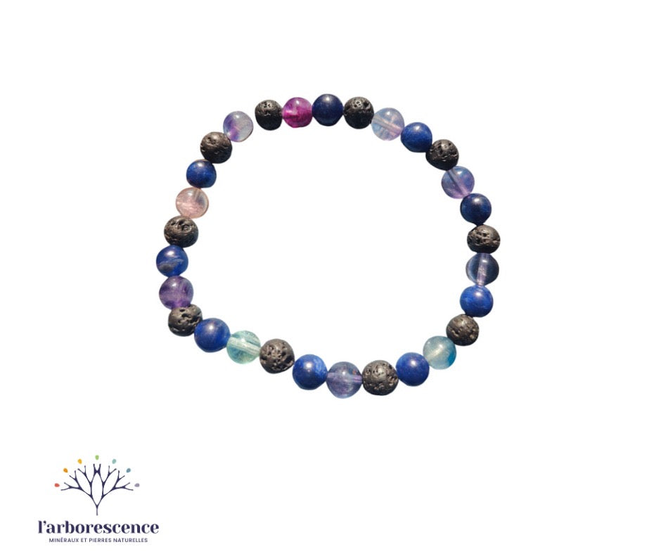 Le bracelet "Gestion des émotions " est réalisé en sodalite, fluorite et pierre de lave.