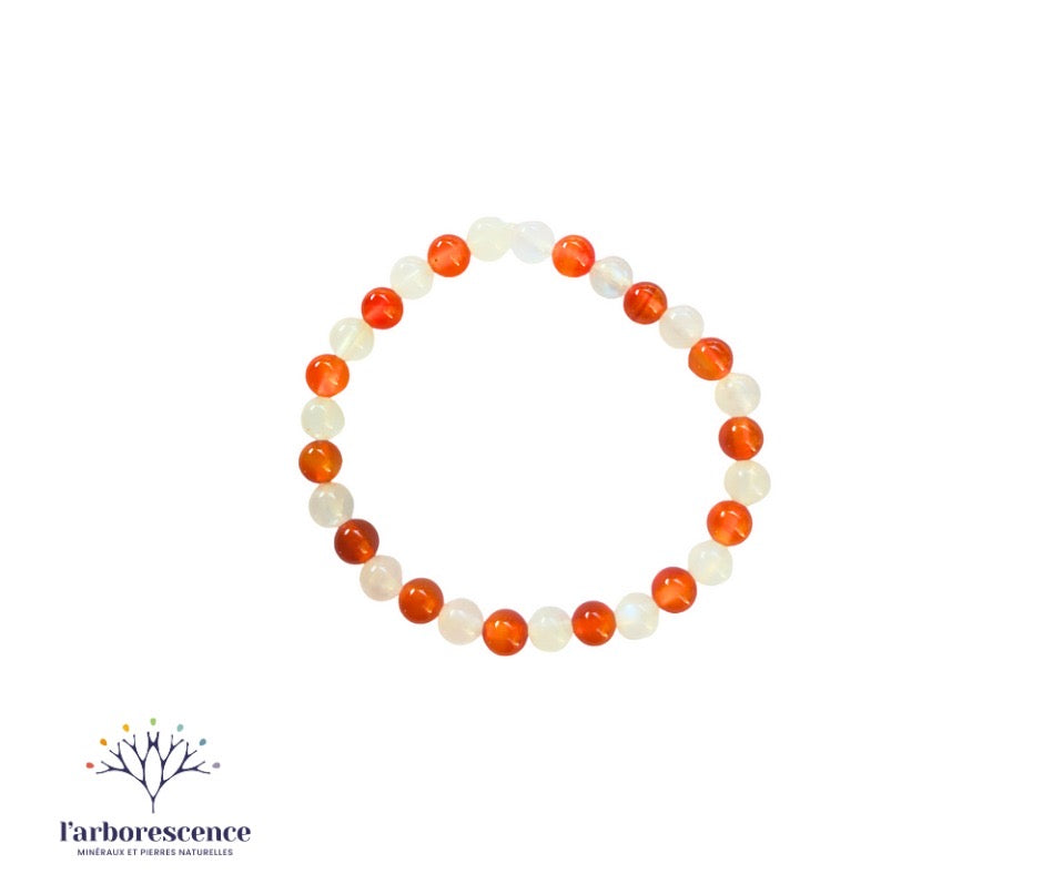 Le bracelet "Fertilité " est réalisé en pierre de lune et cornaline.