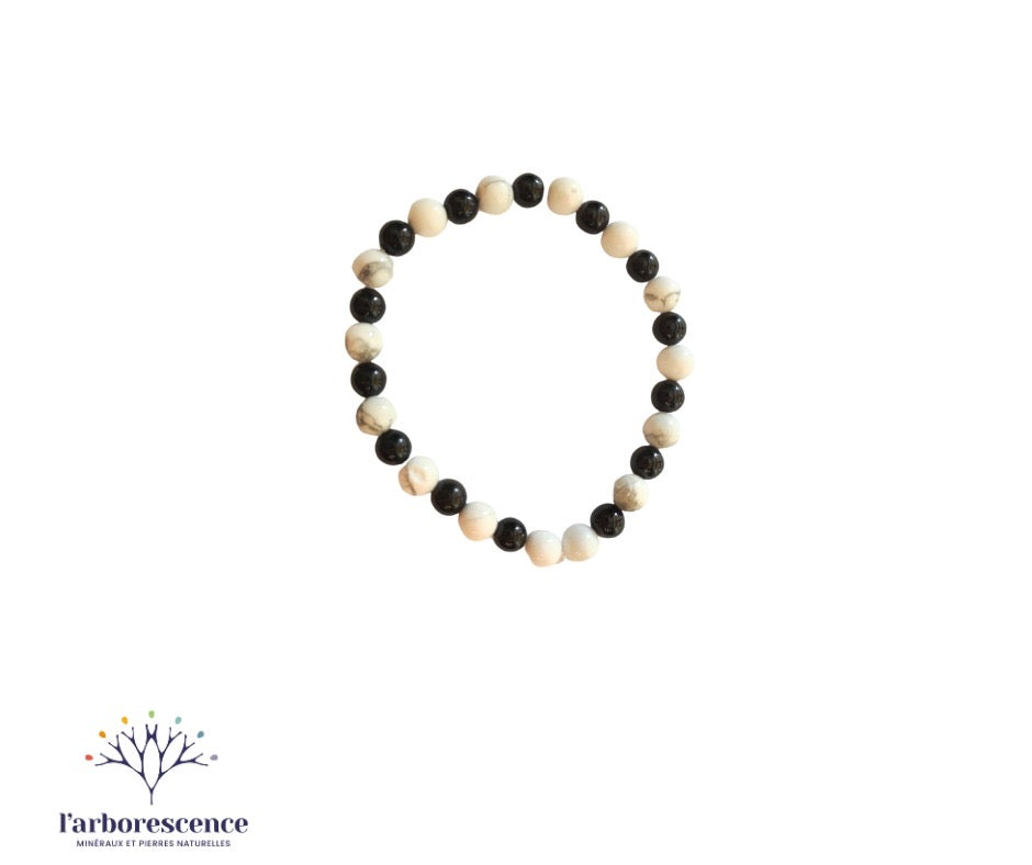 Le bracelet "Renouveau" est réalisé en onyx et howlite blanche.