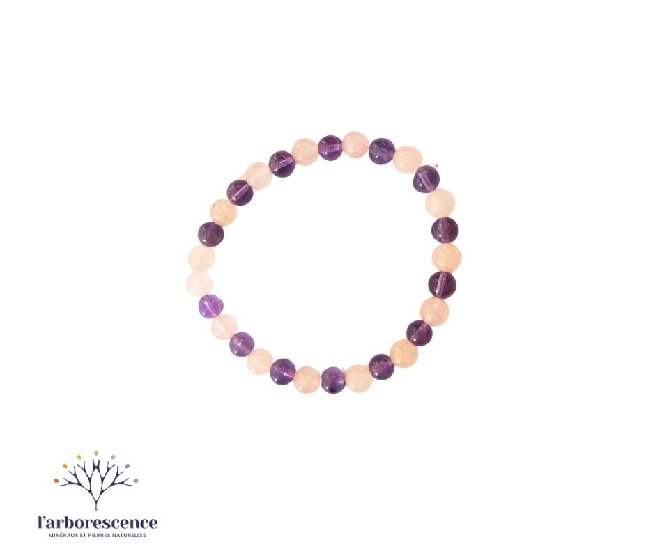 Le bracelet "Sommeil" est réalisé en améthyste et quartz rose.