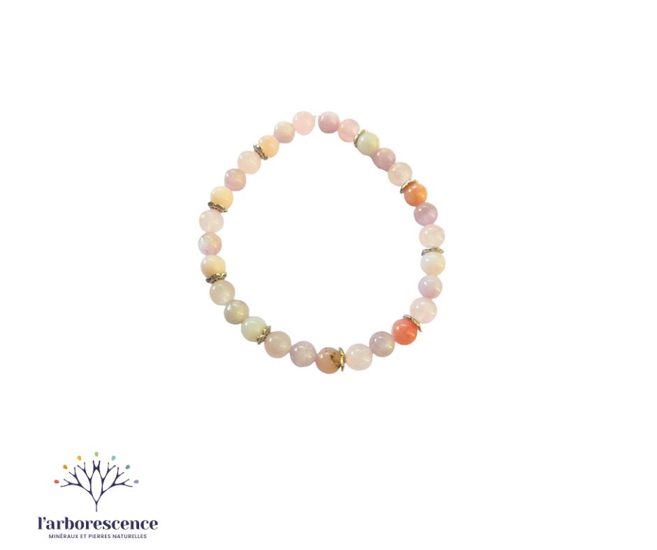 Le bracelet "Tendresse et apaisement du coeur" est réalisé en quartz rose, kunzite et Opale rose.
